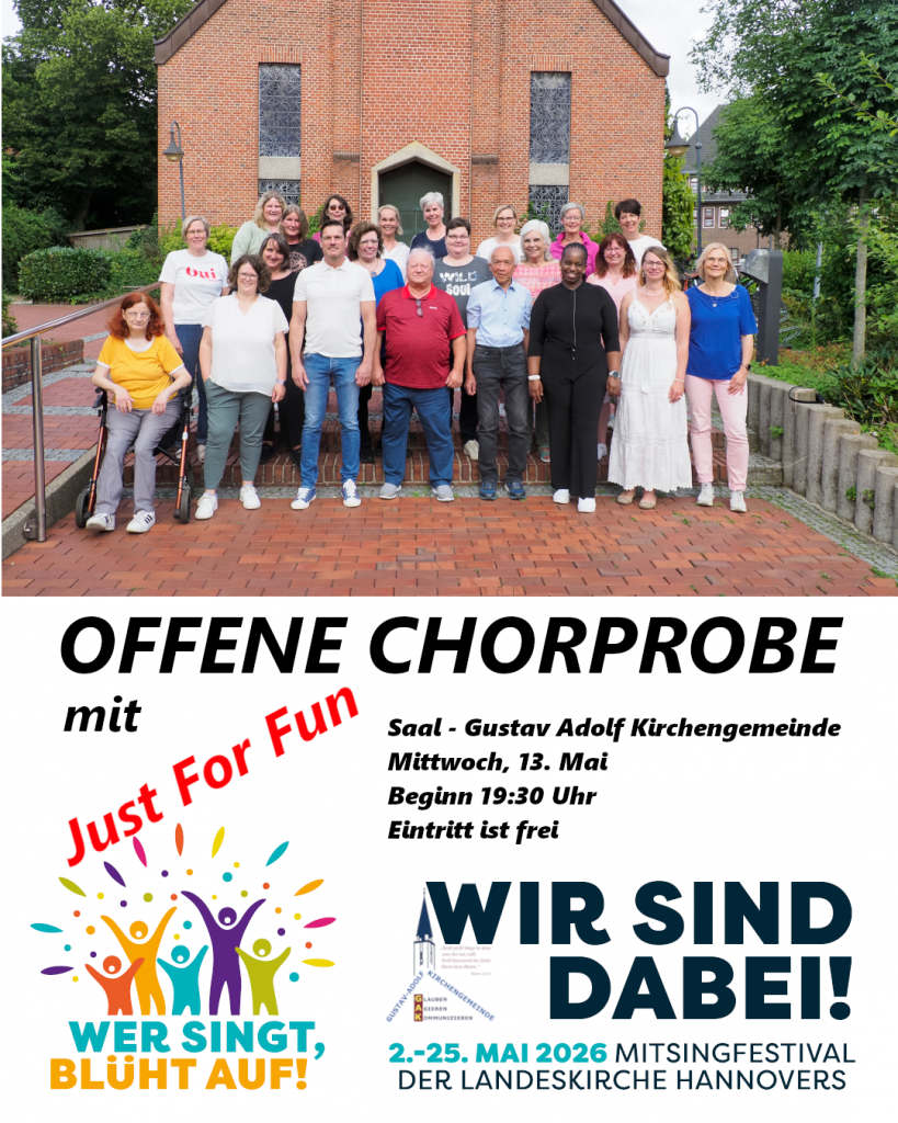 Am 9. Mai 2026 laden wir ganz herzlich zu „Meet ’n‘ Sing“ – unserem diesjährigen Mitsingkonzert – in die Gustav-Adolf-Kirche ein.