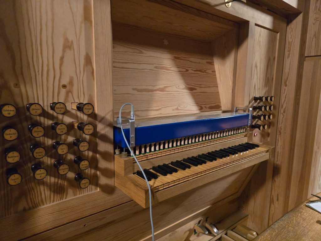 Auf der Orgelempore steht der Stolz unserer Kirche, unsere Orgel aus dem Jahre 1997, die wir Ihnen kurz vorstellen möchten.